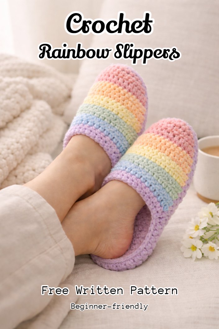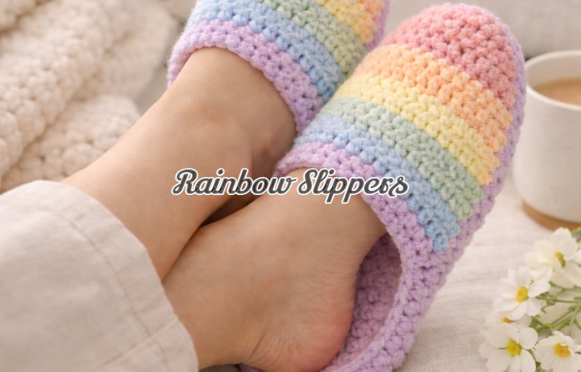 Crochet Rainbow Slippers – Free Written Pattern